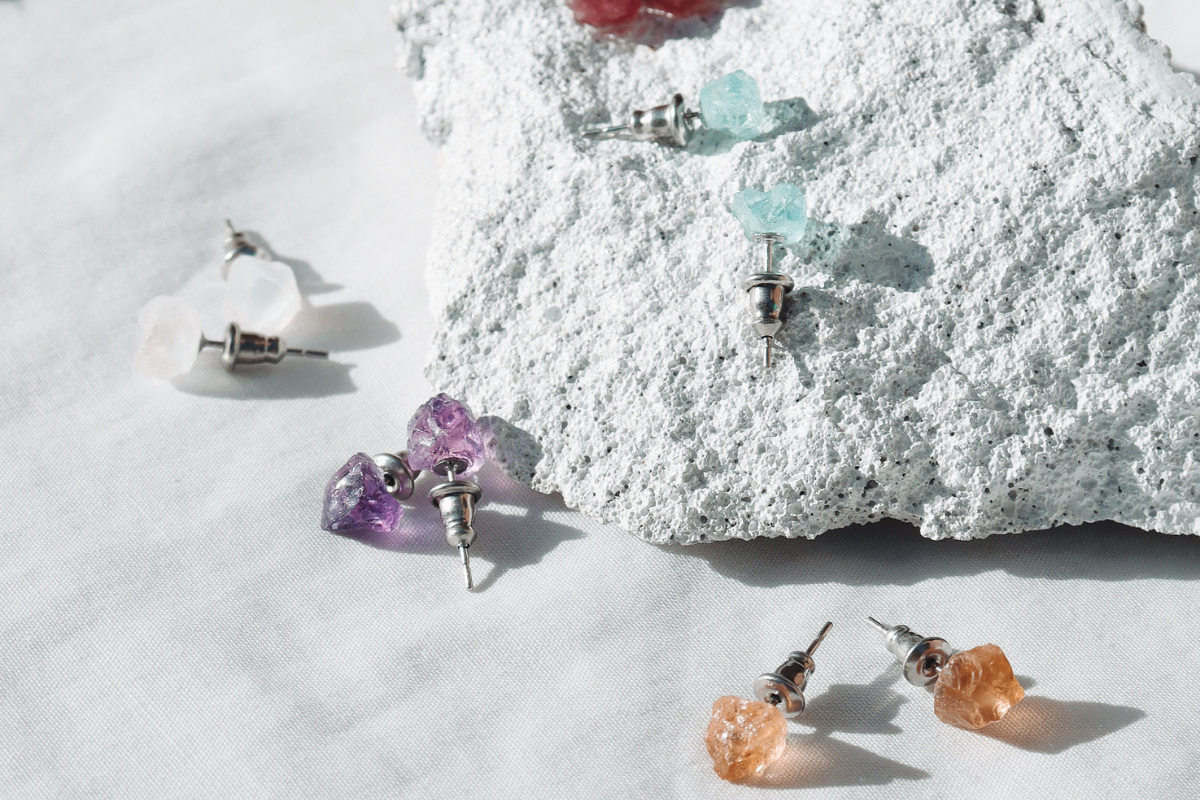 Each pair of these raw crystal stud earrings is unique, featuring their own distinctive shape, texture, and colouring. With a range of gemstone options available, you can select the perfect pair to complement your style and personality.