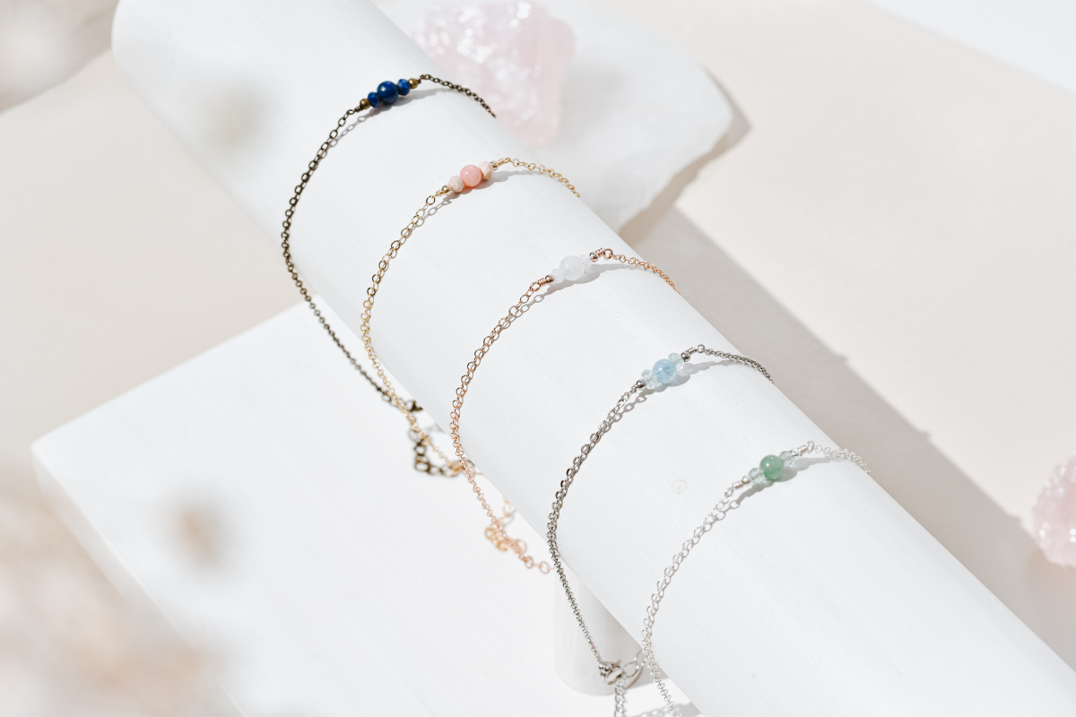 Dip your toes into the tranquil ocean in our dainty aquamarine gemstone anklet. This design oozes simple elegance. It is so lightweight and delicate that you'll bearly know you're wearing it, other than the feeling of being close and connected to this empowering crystal, of course!