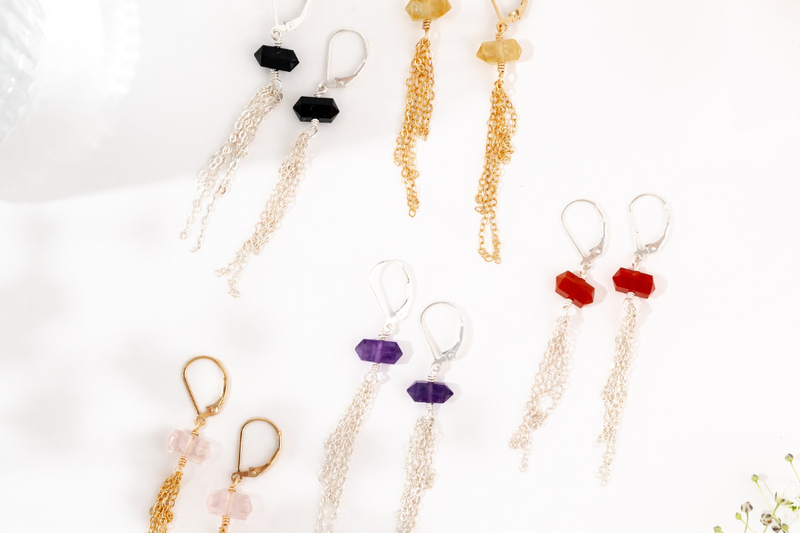 Carnelian Double Terminated Crystal Point Tassel Earrings Luna Tide Skip to content