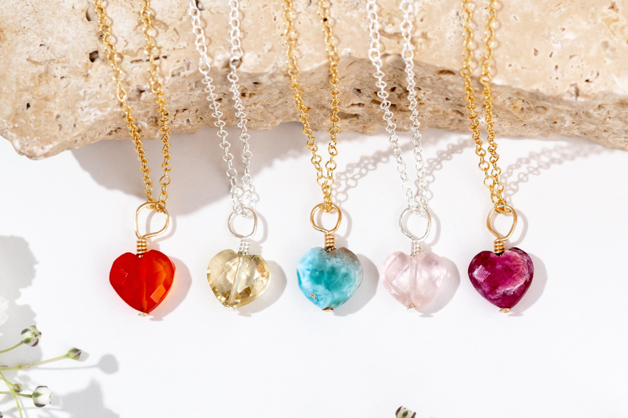 Carnelian Crystal Heart Pendant Necklace - Carnelian Crystal Heart Pendant Necklace - Stainless Steel / Cable - Luna Tide Handmade Crystal Jewellery