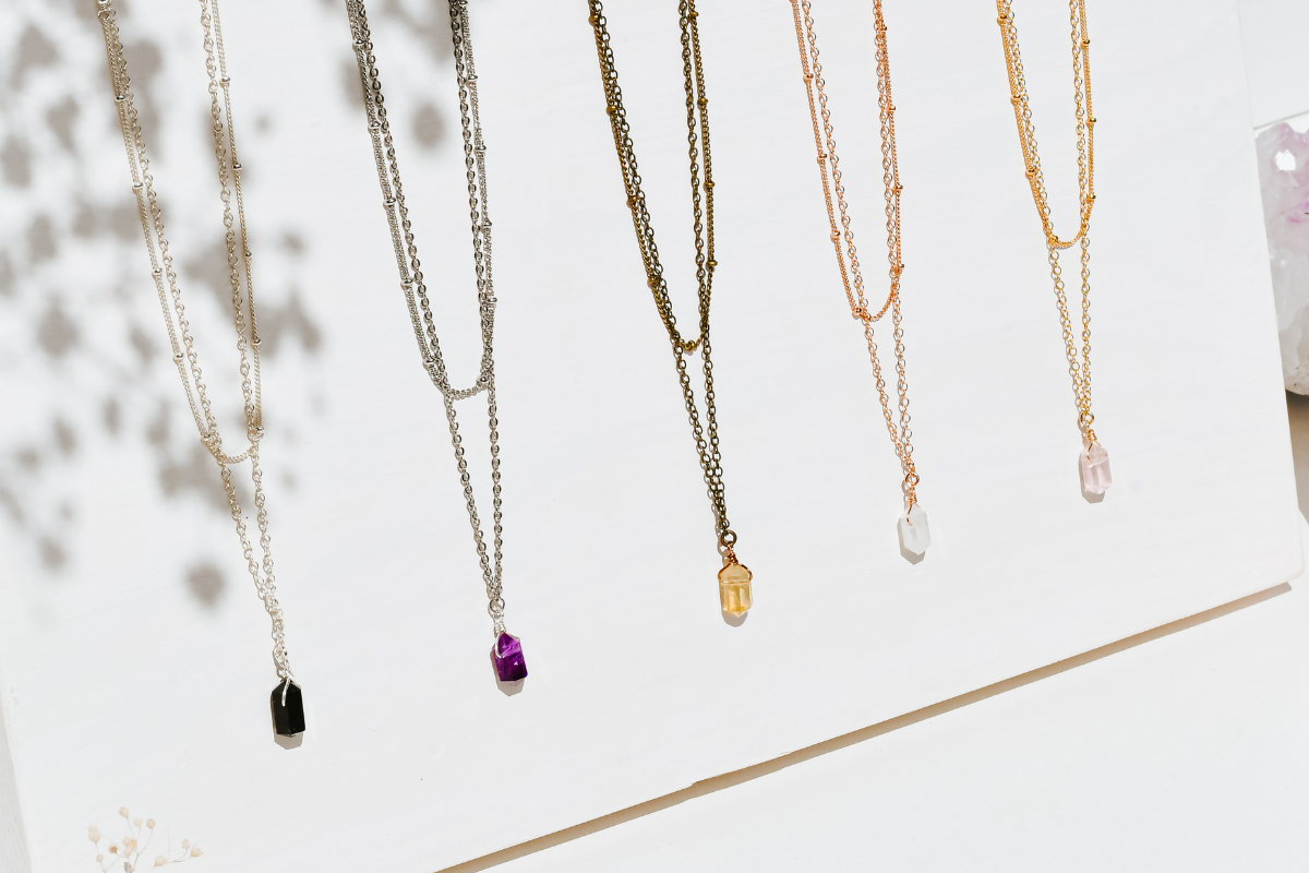 Showcase your unique style in the amethyst double terminated crystal chain layered choker necklace! Our double terminated collection features light and easy-to-wear mini crystals that are pointed at both ends. The shape of these genuine gemstones allows energy to flow in two directions, so you can absorb the healing energies of your favourite crystals where ever you are. Add an elegant sparkle to your night out or a double layer of boho style to your everyday look with this dainty choker handmade especially for you.