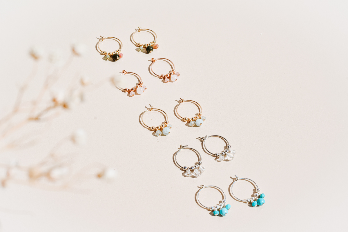 Simple, but stylish, my beautiful rose quartz bead drop hoop earrings are so pretty that you'll want to wear them every day! Hand-created by me, in my studio, these bohemian hoops are made with three dainty genuine gemstones and are easy to wear, wherever your next adventure takes you to. Team with jeans and a jumper to bring boho vibes to your everyday style.