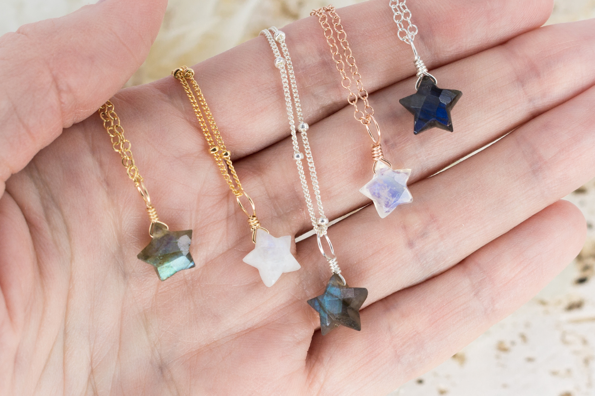 Little Rainbow Moonstone Crystal Star Pendant Necklace