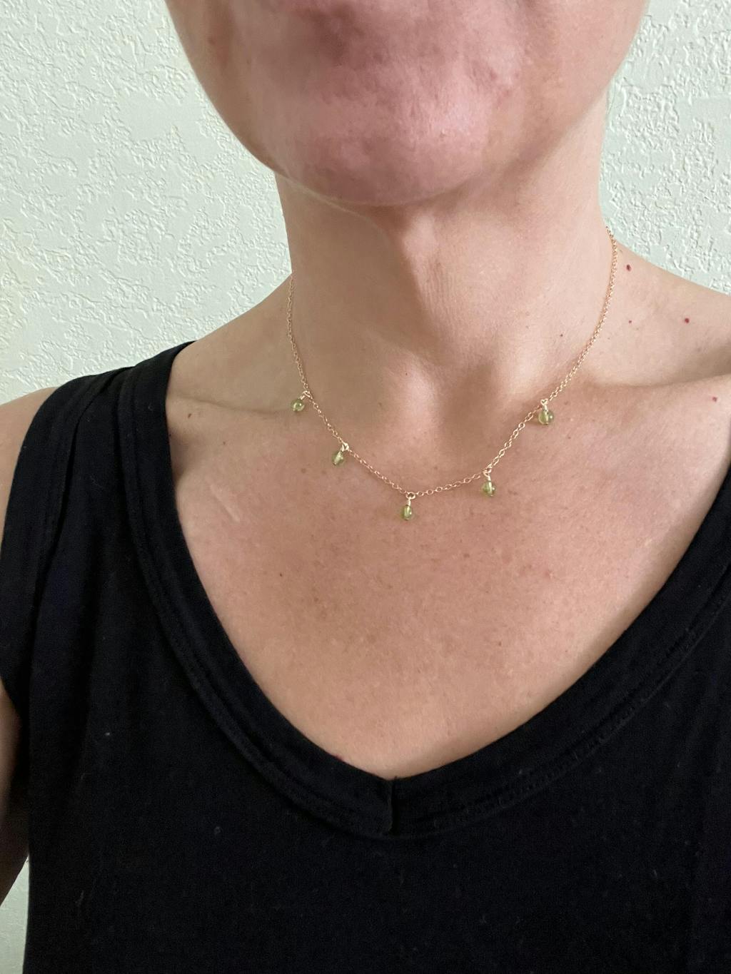 The delicate chain & tiny crystal are truly stunning, it is an understated beauty that I love wearing everyday to protect my energy - it has not tarnished or faded & I have never removed it during sweaty workouts, beach trips, mineral spas, chlorinated pool swims.