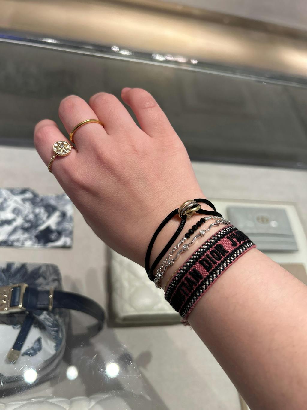 This is very beautiful delicate bracelet. It looks so elegant. I wear it everyday- in shower, gym, swimming and it’s not changed or faded. It’s good quality bracelet.