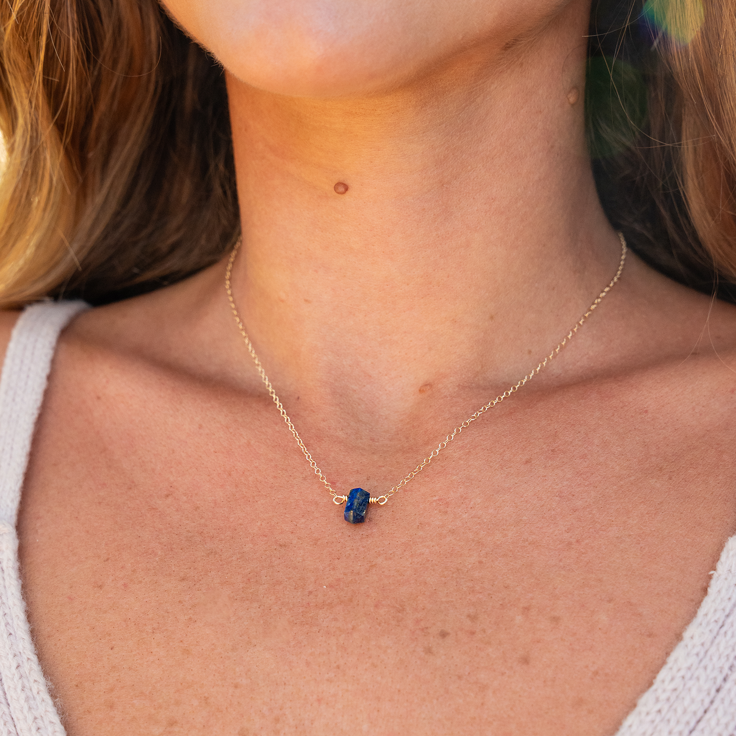 Handmade with care, this necklace is available in sterling silver, 14k gold fill, 14k rose gold fill, or stainless steel. The crystal is fixed securely to the chain so it always rests perfectly in place at the centre of your neckline. Finished with a sturdy spring ring clasp, this non-tarnish piece is designed for everyday wear, carrying the empowering energy of Lapis Lazuli with you wherever you go.