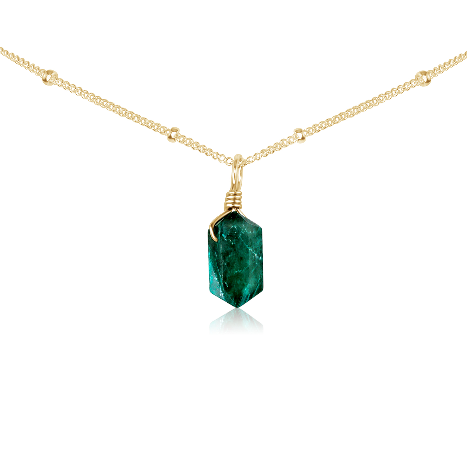 Emerald Mini Double Terminated Crystal Point Pendant Choker Necklace