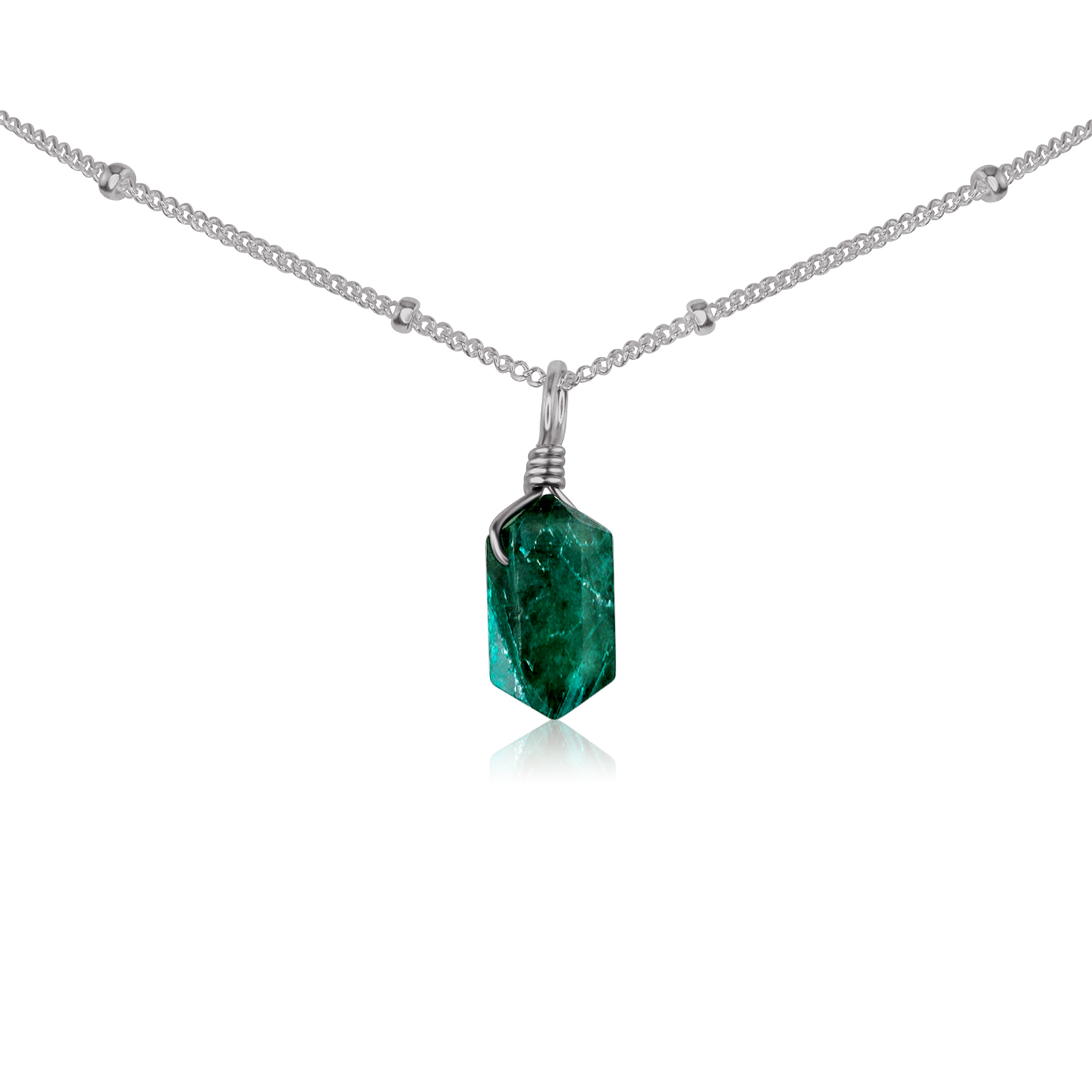 The Emerald Mini Double Terminated Crystal Point Pendant Choker Necklace sparkles with a lush green glow, a timeless symbol of love, compassion, and abundance. Emerald is the stone of the heart, opening you to harmony in relationships and a deeper connection with nature’s infinite renewal. Its mini double terminated point channels energy both inward and outward, creating a flow that nurtures self-love while radiating kindness and balance into the world around you. Wearing this pendant choker fills each day with calm strength and a radiant sense of belonging.