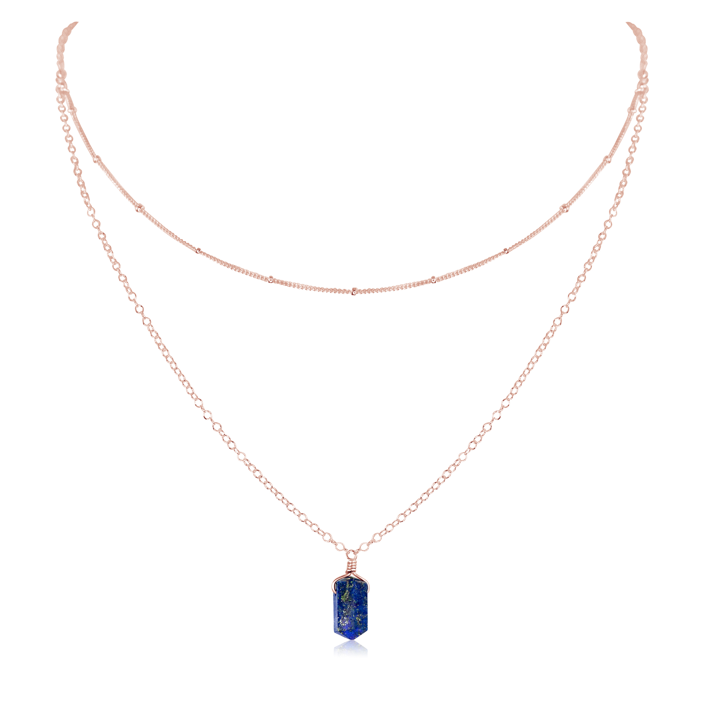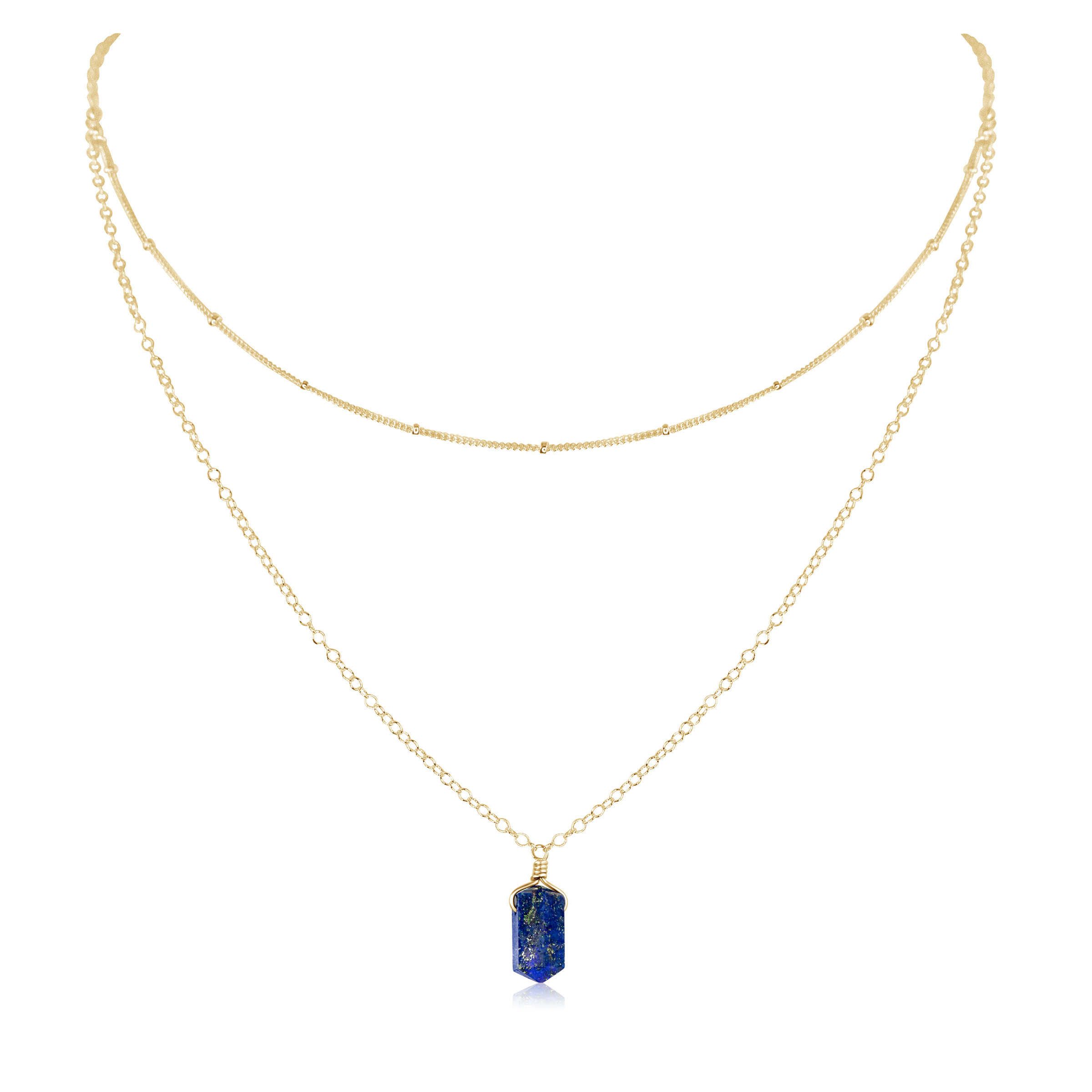 Lapis Lazuli Double Terminated Crystal Chain Layered Choker Necklace