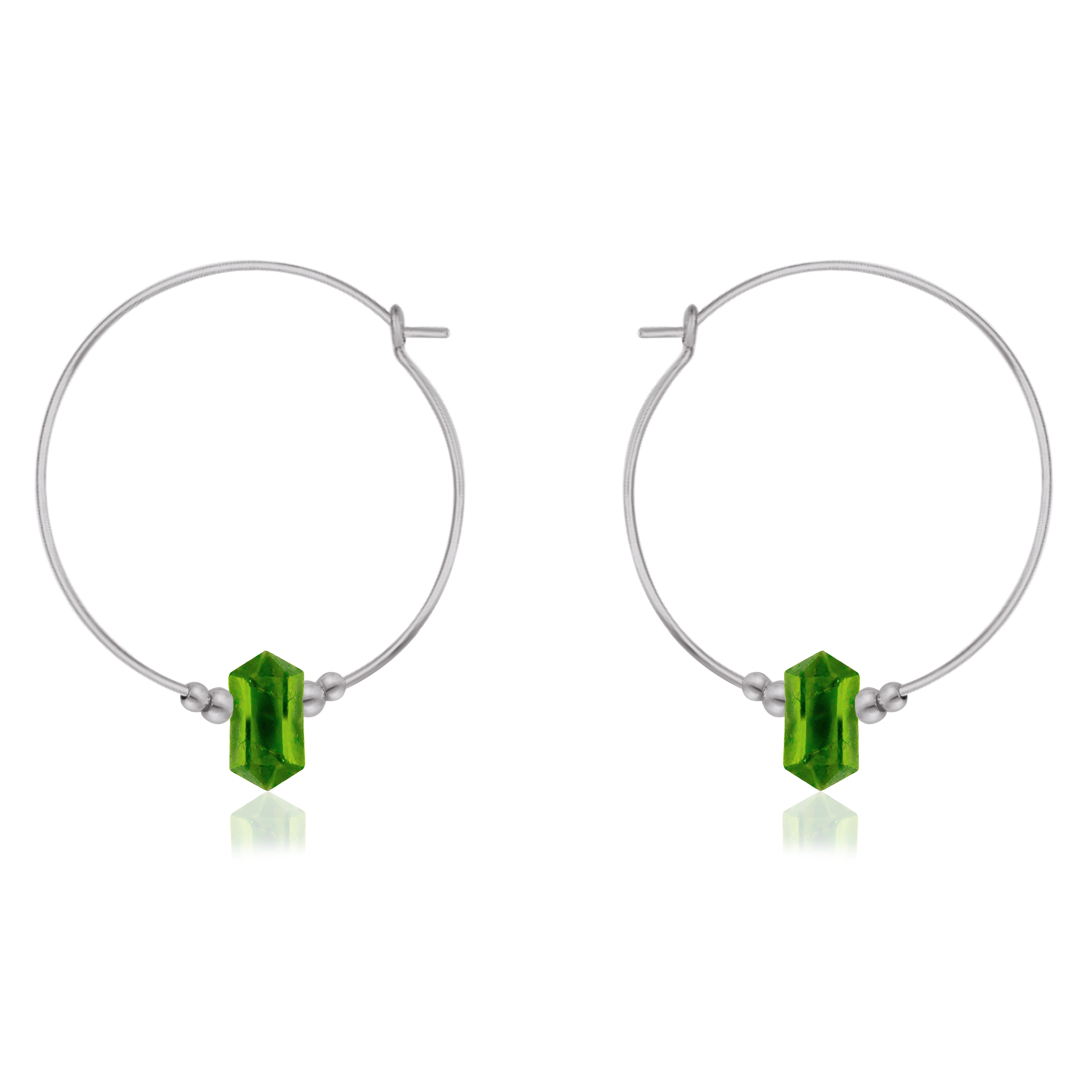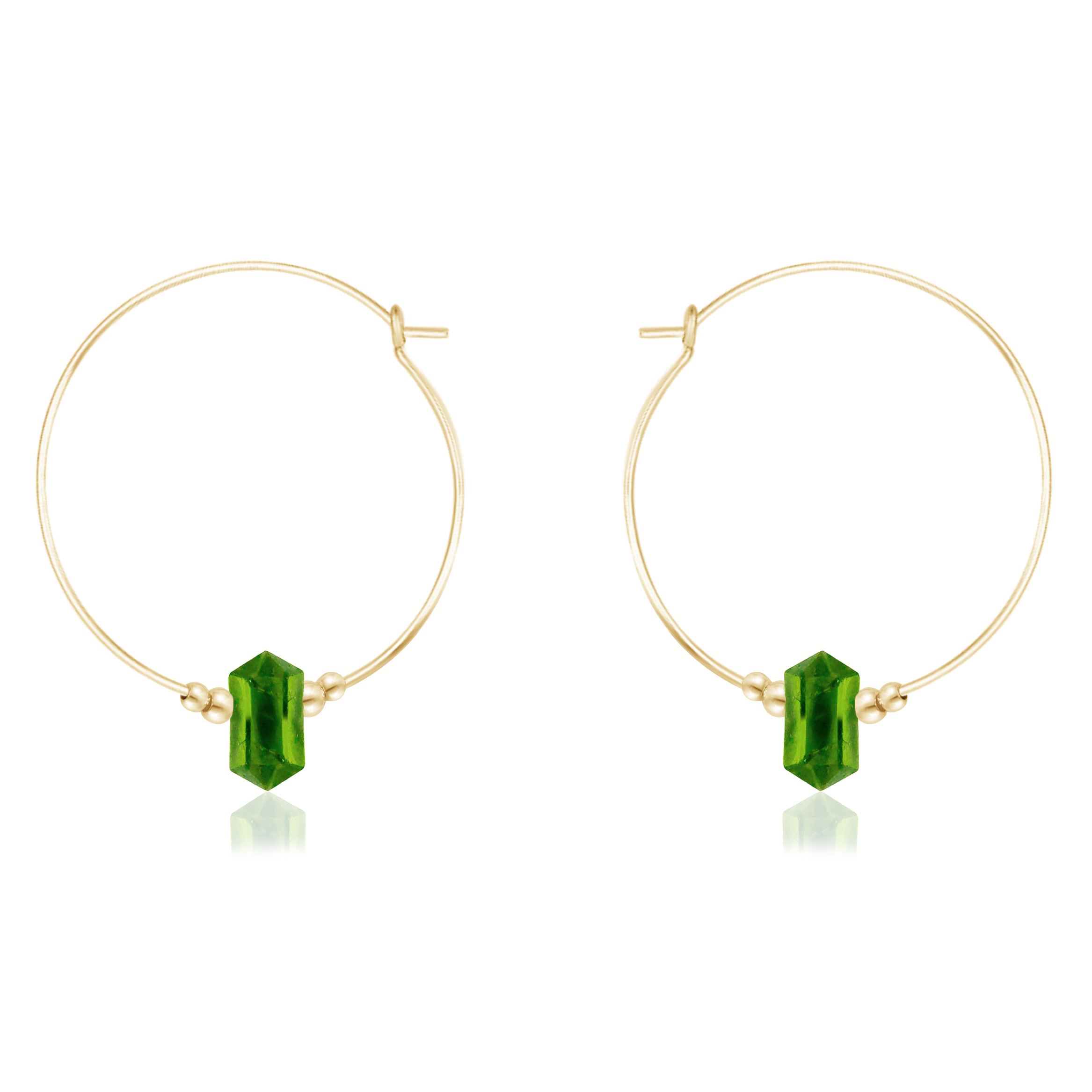 Large Hoop Peridot Double Terminated Crystal Point Earrings